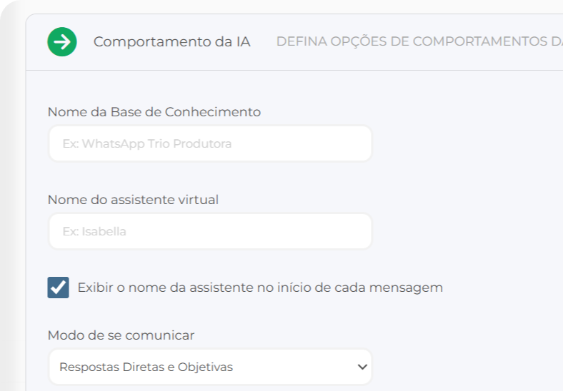 Ensine sua IA sobre seu negócio e deixe ela responder com naturalidade e precisão.